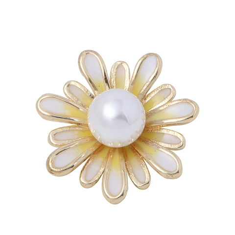 Mode alliage de Zinc bouton à tige en forme de fleur plaqué or émail blanc 24mm lavable luxe décoratif bouton en métal vêtements